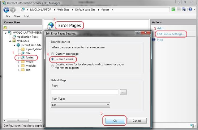 The solution is to go into IIS and disable generic error messages: